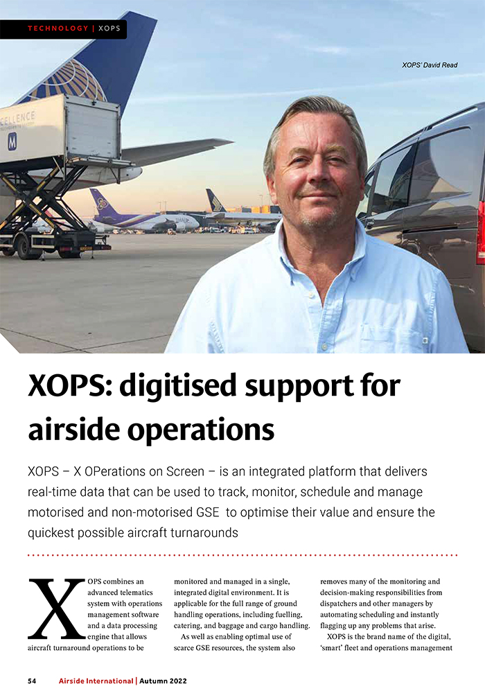 XOPS general manager discusses with Airside International the evolution of XOPS into being one of today’s leading digital platforms for managing GSE and the aircraft turnaround process at some of the world’s busiest airports.