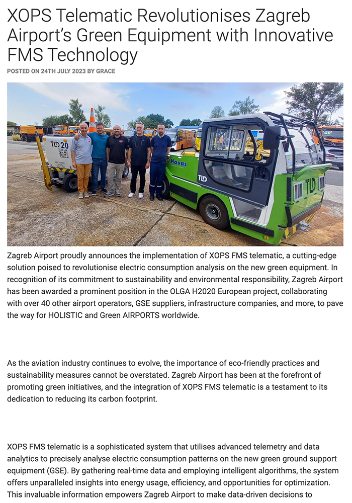 XOPS Telematic Revolutionises Zagreb Airport’s Green Equipment with Innovative FMS Technology